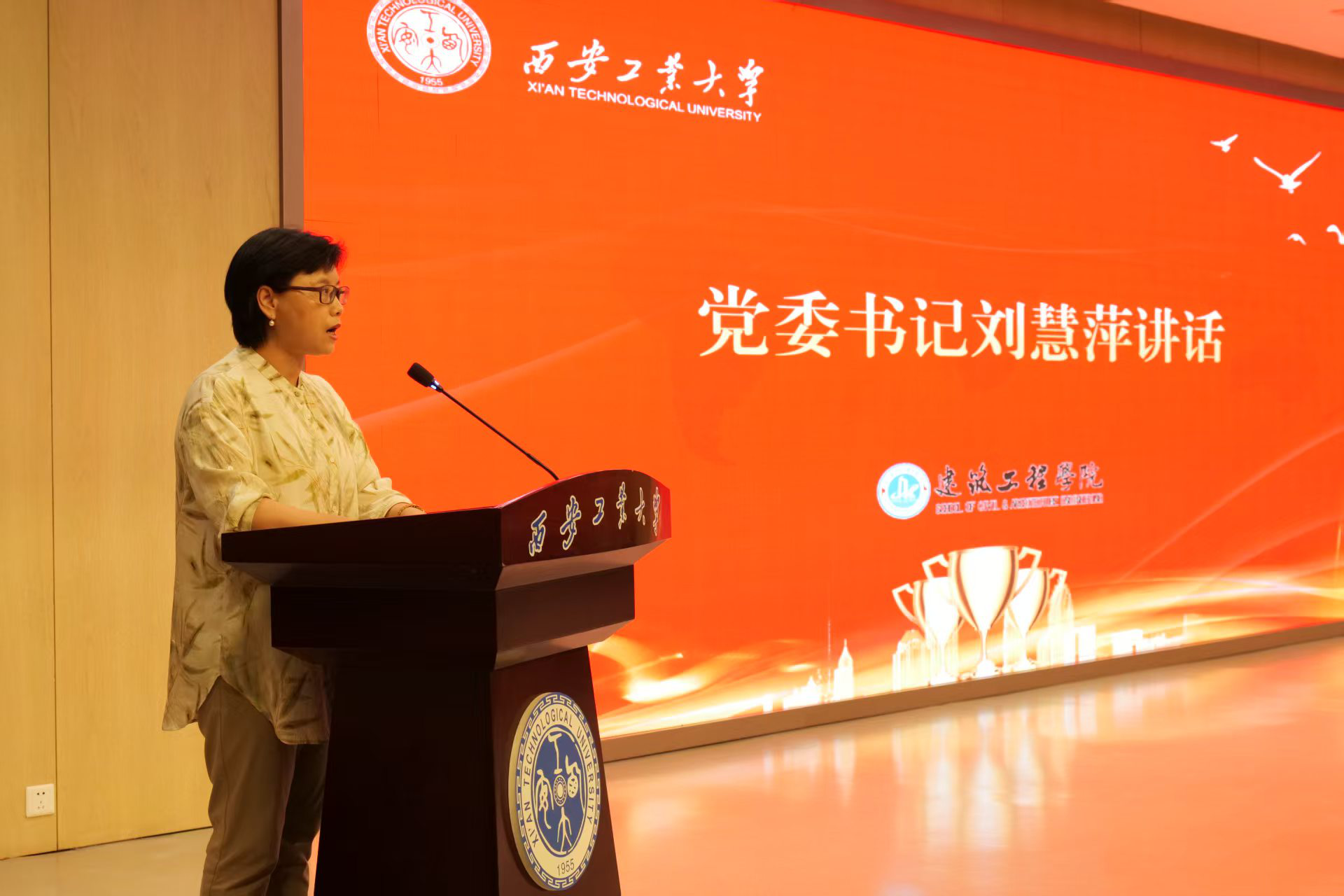 典礼最后,党委书记刘慧萍发表热情洋溢的讲话。她代表学院党政领导班子向受表彰的先进集体和优秀个人表示最热烈的祝贺,向辛勤耕耘的全体教职员工致以崇高敬意,向奋发向上的全体建工学子致以诚挚问候。在深情回顾过去一年学院师生秉承校训校风,在教育教学、科学研究、实践创新、文化传承等方面取得的瞩目成绩后,她对全体学生提出殷切期望,希望大家筑牢信念之基、夯实专业之本、敢为人先之锐、涵养建工之魂,在全院形成崇尚先进、学习先进、争当先进的浓厚氛围。