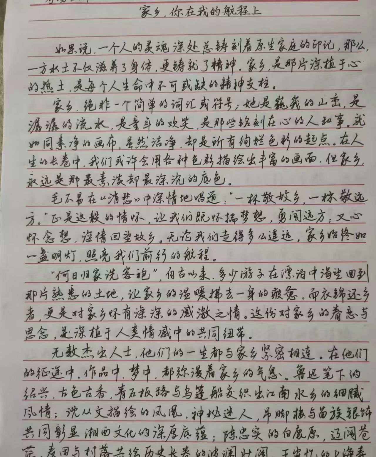 此次活动为同学们提供了抒发乡情的平台,成功地将对故乡的热爱升华为对祖国的深情,深刻诠释了“小我”与“大我”的血脉相连,有力增强了学生的文化认同感与时代使命感。
