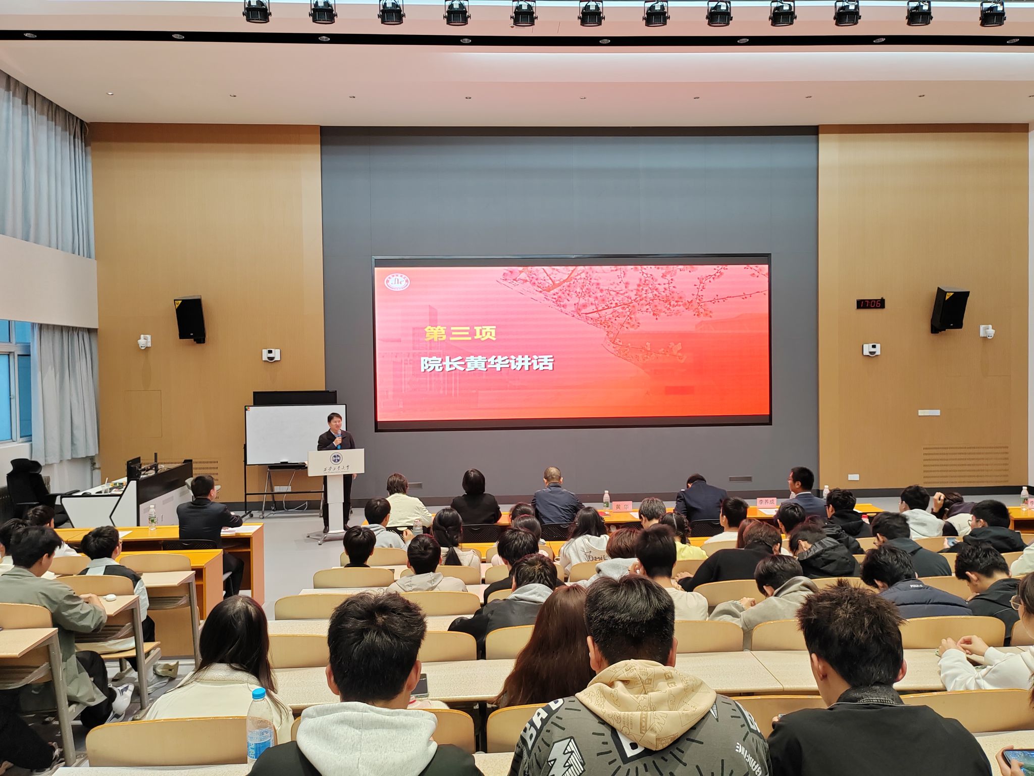 在教3-217教室隆重举行2025级本科生见面会暨专业教育大会。学院院长黄华、副院长张治宏、办公室主任曾志英,各系主任、学工干部及全体2025级新生共同参会。会议由学工办主任刘冬主持。