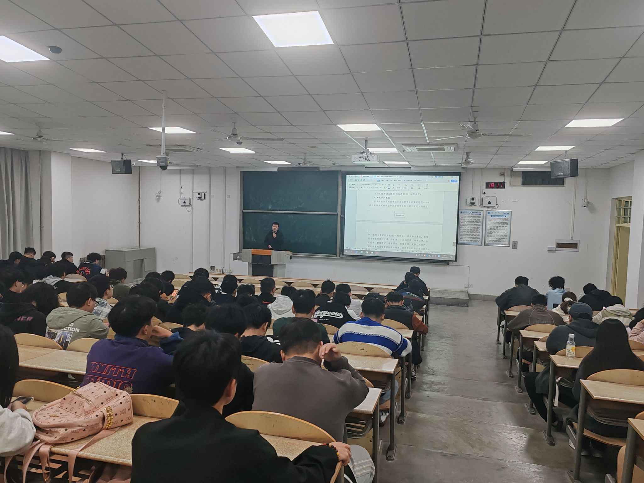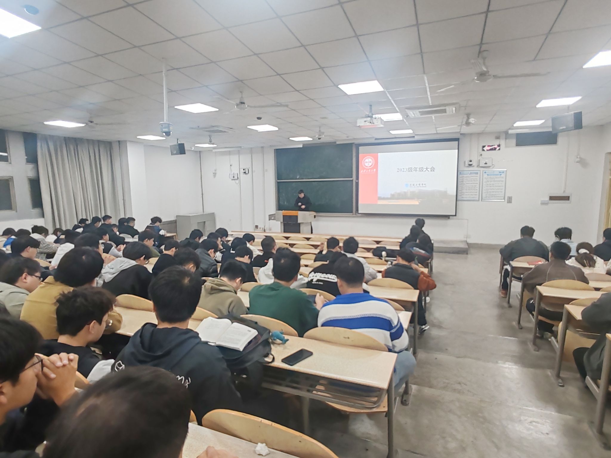 2023级在教1-104召开年级大会,会议由2023级辅导员刘冬主持,全体2023级学生参加。旨在部署学校审核评估相关工作,强化学生行为规范,筑牢校园安全防线。