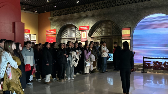 11月22日清晨,研学团队前往延安革命纪念馆。一幅幅珍贵的历史图片、一件件朴素的革命文物、一幕幕复原的历史场景,系统而生动地再现了那段艰苦卓绝却又激情燃烧的岁月。师生们驻足凝视,仿佛听到了毛主席在窑洞里奋笔疾书的落笔声,看到了大生产运动中军民一心、自力更生的火热场面。历史的画卷在此徐徐展开,让书本上的理论变得可感可触。