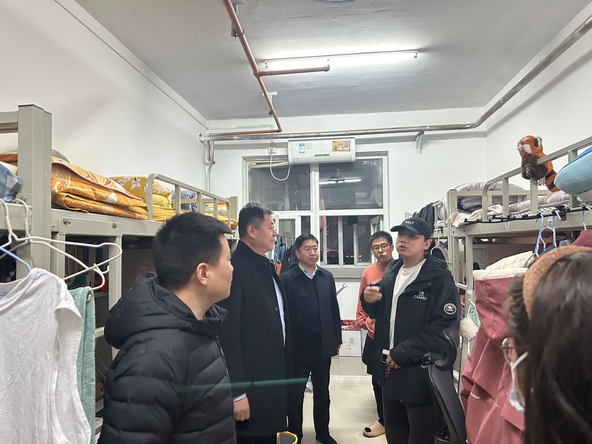 党委书记王守民、党委副书记贾建利带领全体辅导员深入学生宿舍,为学子们送去冬日关怀与问候,旨在深入了解学生在校学习生活状况,进一步加强宿舍安全管理,营造文明、和谐、安全的宿舍环境。