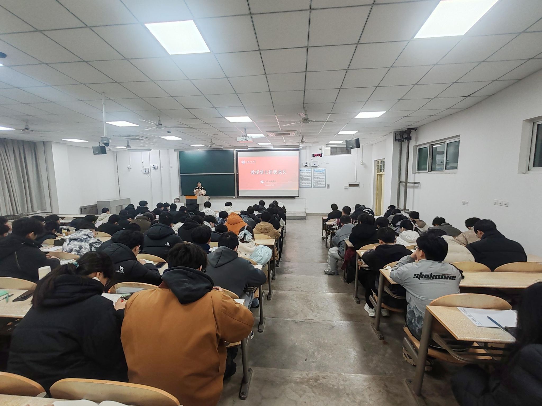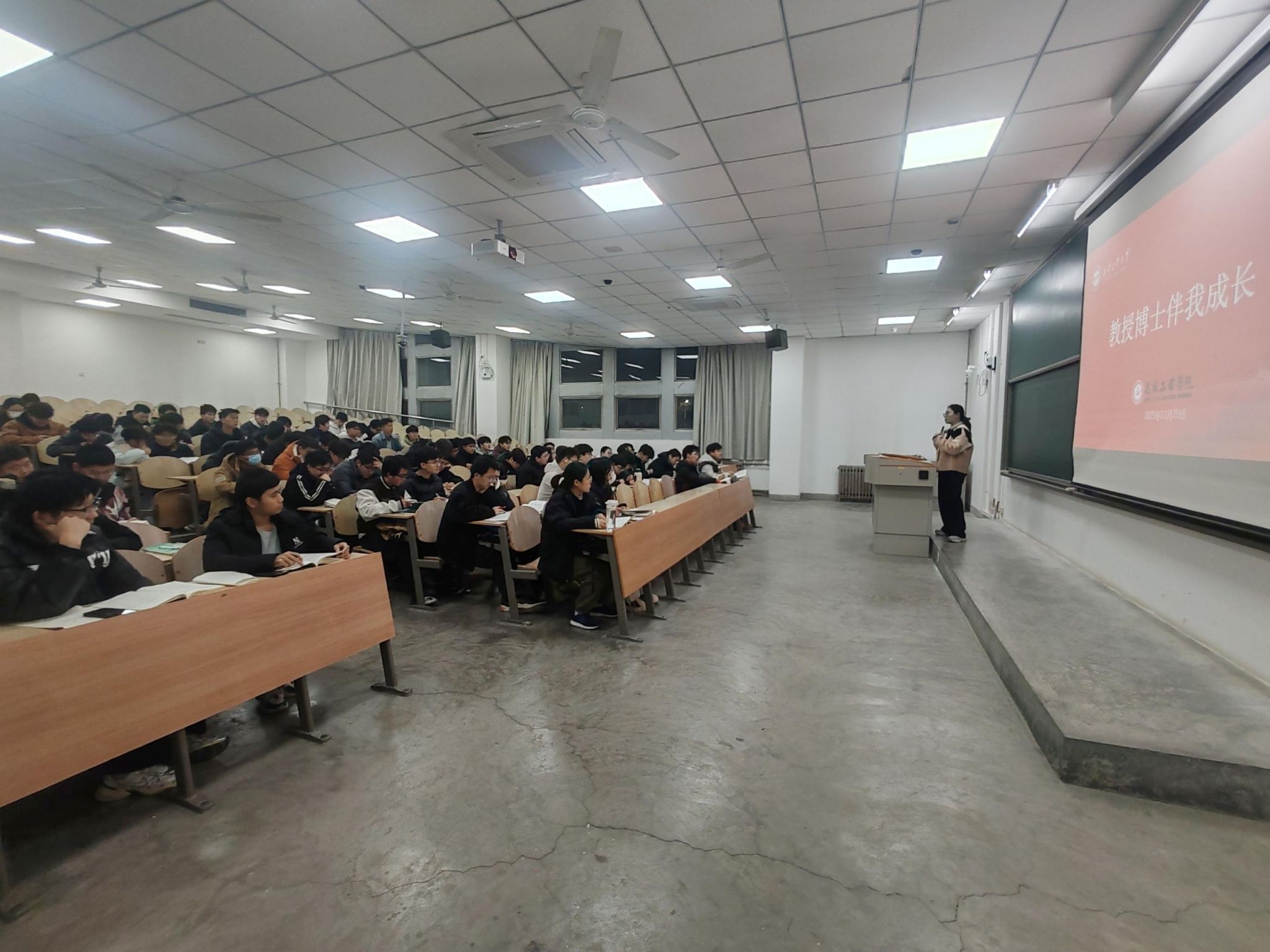 在教1—104开展“教授博士伴我成长”经验分享会,晁思思主持活动,2023级土木工程专业全体学生参与。旨在通过教授、博士的成长经历与学业指导,为学生厘清专业学习思路、明确发展方向,助力学生学业成长与专业素养提升。