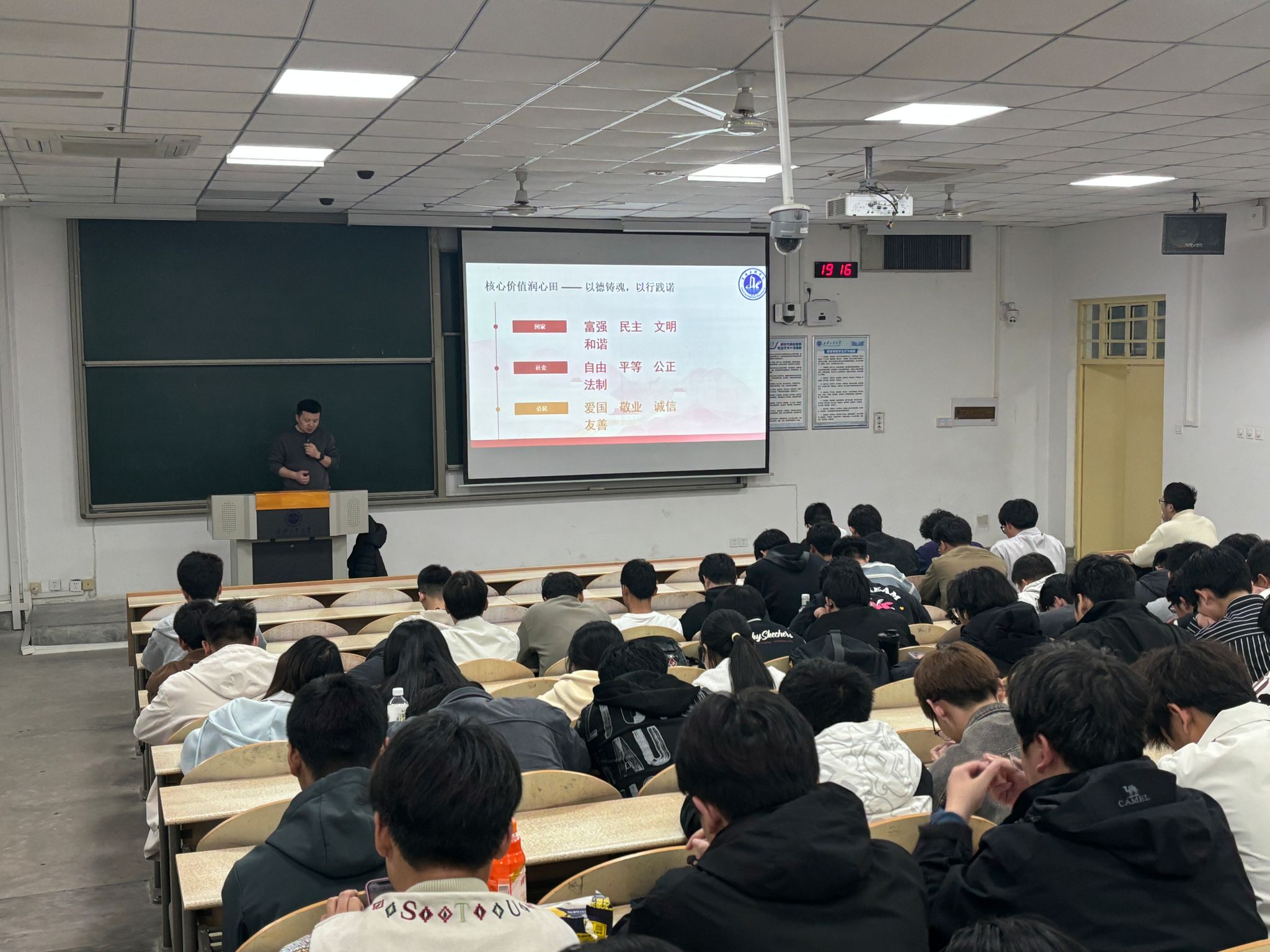 会上,各年级辅导员围绕“是什么、为什么、怎么做”为核心脉络展开讲述。在解读核心价值观内涵环节,老师们从国家、社会、公民三个层面拆解24字核心要义,通过生动案例与互动,鼓励学生思考如何明确奋斗目标,将个人理想融入国家发展大局,做到“想必做、做必成”,全面提高逻辑思维与动手实践能力。结合新学期新征程,辅导员带领大家通过重温校纪校规、开展防电诈安全教育,将社会主义核心价值观教育与日常管理相融合,强调禁烟控烟、文明出行等具体行为重要性,要求学生骨干发挥示范作用,引导大家增强自我教育意识,在日常言行中彰显新时代大学生文明风貌。