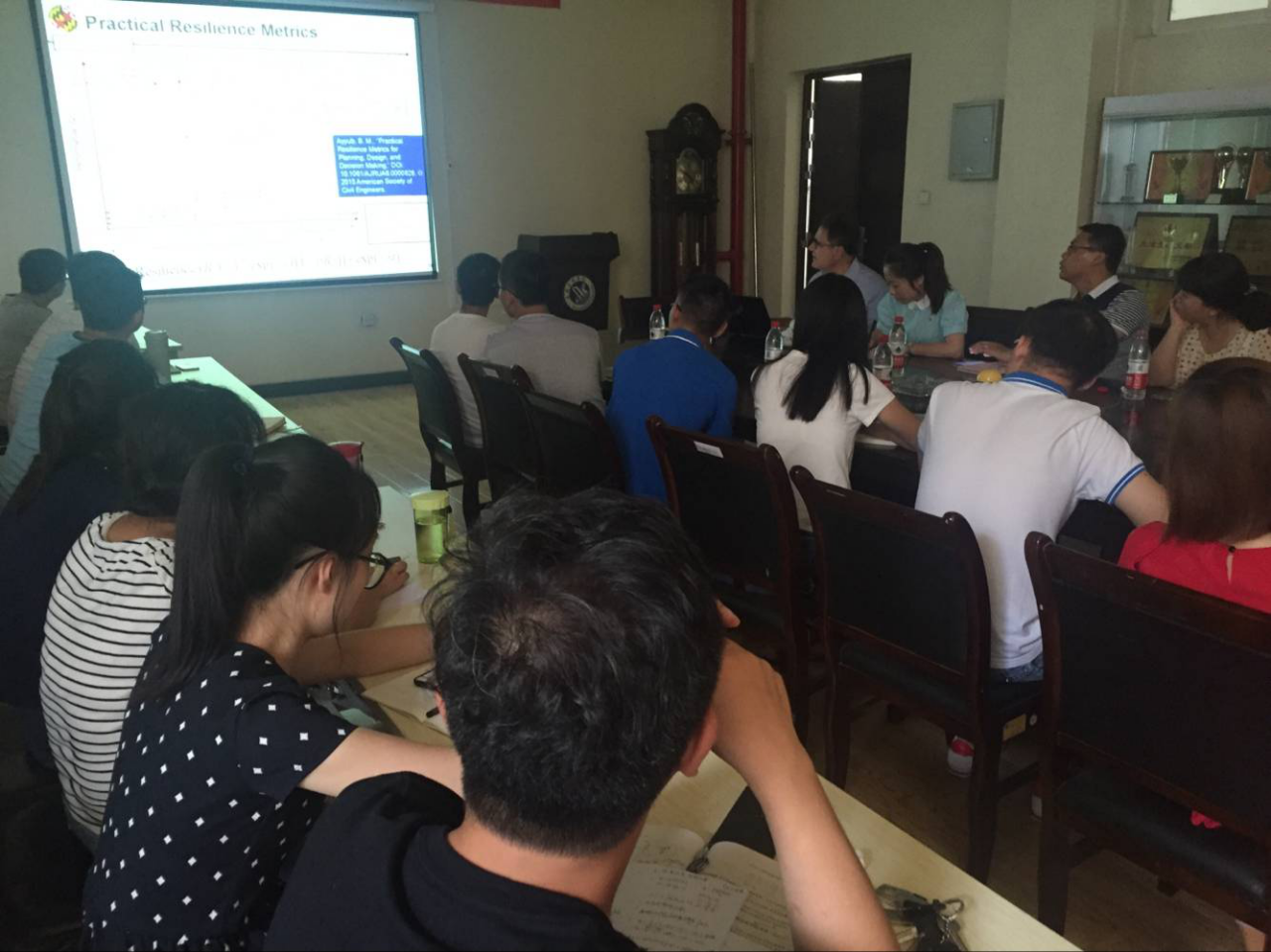 Bilalm.Ayyub博士作了题为“Practical resilience metrics for infrastructure systems”的学术报告,报告由学院副院长赵敏教授主持。Bilalm.Ayyub博士重点介绍了其在风险评估和灾害预防方面的研究成果以及测试数据筛选、整理、统计和分析方法,91短视频