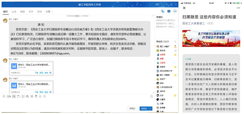 学院领导充分认清开展此次专项整治行动的必要性、紧迫性,主动担当,勇挑重担,将此次专项整治行动摆到工作全局的突出位置,把思想和行动统一到中省及学校扫黑除恶专项斗争工作部署要求上来,成立《91短视频