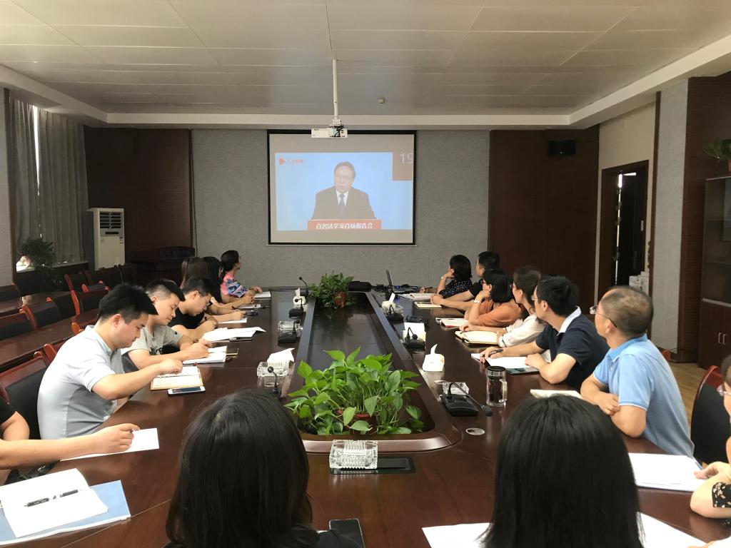 7月29日下午,学院召开中心组扩大学习会,集中收看了由中国法学会党组成员、学术委员会主任张文显主讲的题为“宣传贯彻《中华人民共和国民法典》”的专场直播报告会。学院师生还通过手机终端等方式同步收看了视频直播。