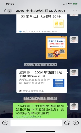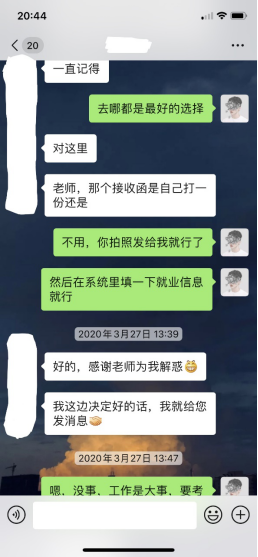 学院领导针对今年就业特殊形势,提出要深入了解学生需求,针对毕业生从毕业设计进展、就业升学状况开展深度访谈,加强对毕业生的关怀,用言语送去关爱,用交流化解风险,陪伴学生一起走过这段特殊时期。毕业班辅导员详细了解了学生的就业动态、困惑及需求,实时更新反馈,为学生的就业保驾护航。