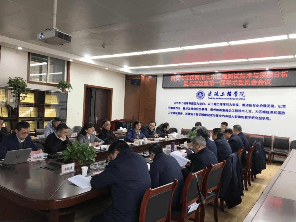 12月20日下午,西安市军民两用土木工程测试技术与毁损分析重点实验室在西安召开了本年度学术委员会会议。会议第一阶段由建筑工程学院郭庆军副院长主持,并介绍与会专家和领导。赵红星副校长致欢迎词,刘慧萍副院长介绍学院教学科研整体情况,科技工作部肖锋副部长宣读西安市重点实验室获批文件,学院张英书记宣读重点实验室第一届学术委员会聘用文件。赵红星副校长向学术委员会委员颁发了聘书。