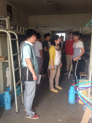 此次卫生检查学院高度重视,上午9时30分在学院副书记的带领下,卫生检查小组来到学生四公寓开展检查工作。检查中发现,多数宿舍都能够按照学院要求定期打扫,但仍存在卫生死角,距离“文明宿舍”的标准还有一定的差距,有个别宿舍存在物品摆放杂乱无章,宿舍空气污浊等问题。检查结束后,张书记针对2014级宿舍存在的问题,召开了简短的整改会议,会上张书记希望2014级学生在宿舍卫生、学习风气及个人素质养成三个方面给予足够重视,将“文明宿舍”的标准作为努力方向,学院今后将会加强对宿舍的检查力度。