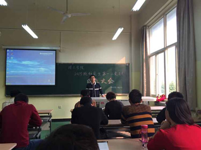 2015级研究生第一党支部和第二党支部成立大会在工4-205教室举行。建工学院党委书记黄越、党委副书记张艳霞、研究生原各支部书记及2015级全体研究生党员参加了本次会议。