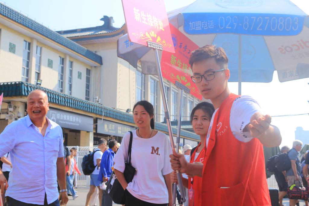 在西安市火车站迎接2019级新同学,迎新标语振奋人心,爱心服务车队穿梭往来,迎新现场有条不紊,一个个忙碌的身影,一张张亲切的笑脸,构成了西工一道道亮丽的风景线。今年学校的迎新工作启用了人脸识别和迎新系统,新生只需刷身份证即可办理资格审查,流程高效简洁。