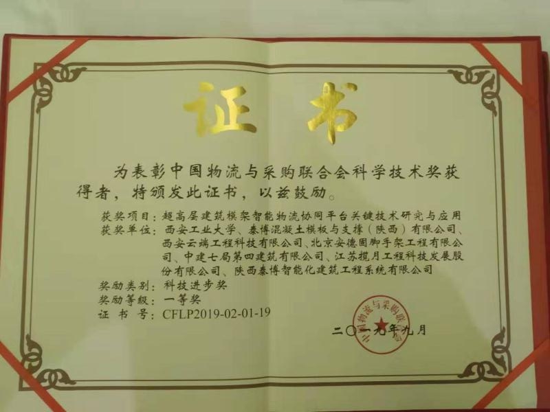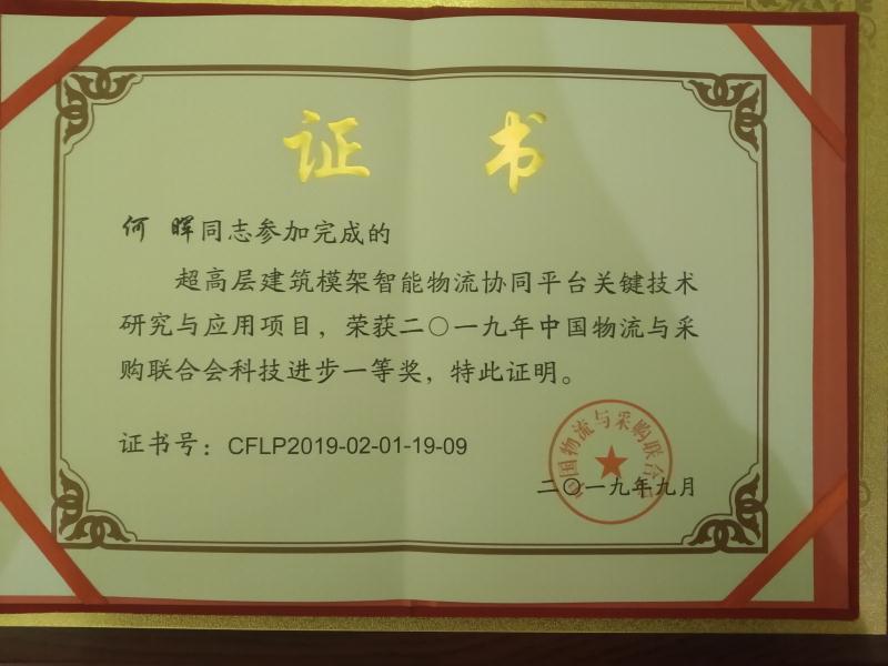 2019年10月11日,由中国物流与采购联合会与岳阳市人民政府共同主办的“第十二届全国现代物流科技创新大会暨2019年度中国物流与采购联合会科学技术奖颁奖大会”在湖南省岳阳市隆重举行,我校建工学院曾凡奎教授主持完成,陕西泰博智能模架有限公司、中建七局等参与完成的《超高层建筑模架智能物流协同平台关键技术研究与应用》获科技进步一等奖。此奖是我校首次在物流领域获得的省部级(社会力量)奖项。2019年7月,中国物流与采购联合会组织专家鉴定为该技术达到国际领先水平。