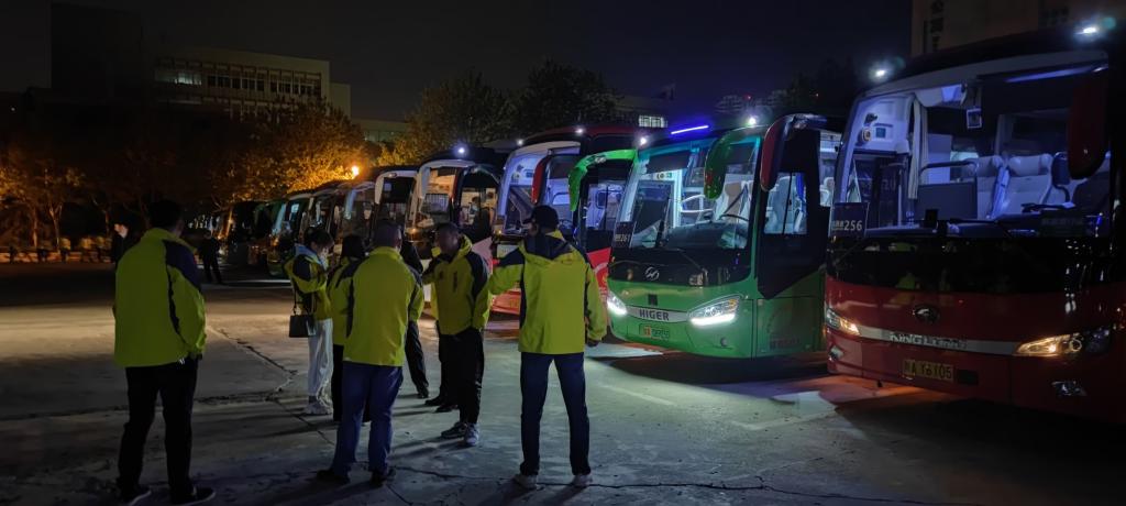 凌晨5:00,志愿者们在工科4号楼集合完毕,并同带队老师刘冬和赛事专员谢齐顺一起乘车前往志愿服务站点。来到志愿服务站之后,大家按照之前的分工紧锣密鼓地搬运物资、布置场地,并搭建起了G16补给站。此次补给站主要负责参赛选手的物资补给,其中包括矿泉水、饮料和海绵。