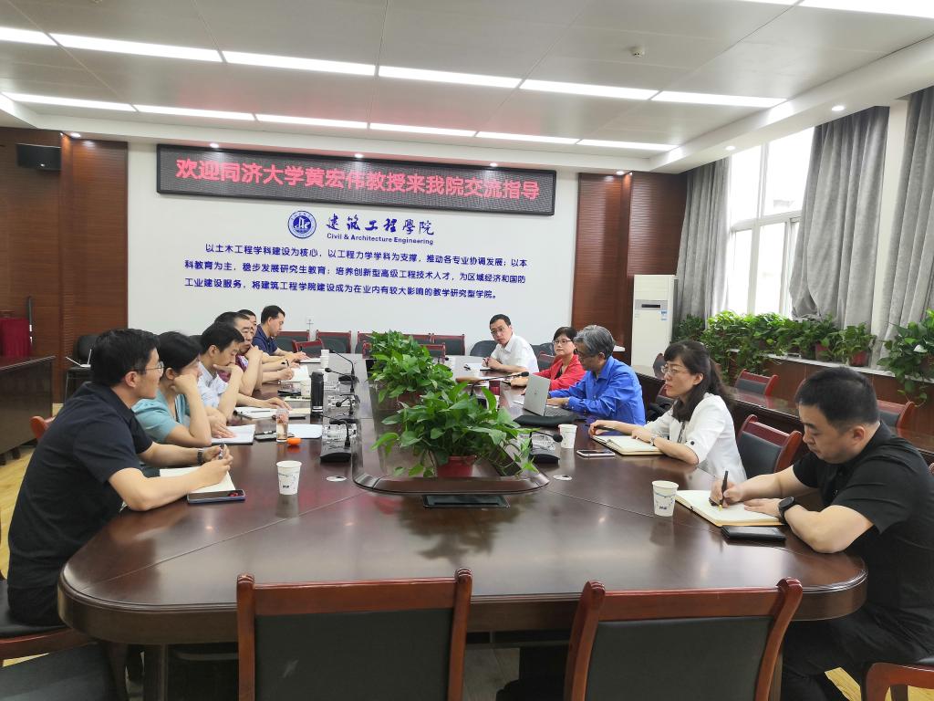 座谈会上,副院长刘慧萍教授首先对黄宏伟教授的到来表示欢迎,感谢黄教授百忙之中抽时间莅临学院指导工作。随后,参会教师就工作中遇到的问题与黄教授进行了探讨,黄教授从土木工程专业的专业建设、学科前沿、人才培养等方面与大家进行了深入交流。