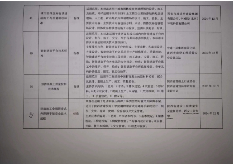 本《规程》由我校建工学院曾凡奎博士团队起草编制,适用于电动和液压两种升降两种类型的附着升降式脚手架,指导陕西省建筑施工用附着式脚手架的设计、制作、安装、拆除、使用、检验验收及安全管理。《规程》的编制将有助于进一步强化我省建筑施工全钢附着式升降脚手架的安全管理,推动绿色施工管理的发展,促进施工管理标准化、规范化、精益化,减少安全隐患,提高工程质量。