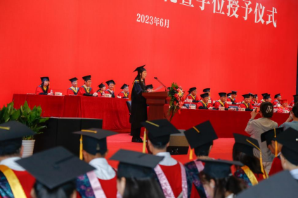学院党委书记刘慧萍宣读2023届毕业生名单、授予学位的决定和表彰优秀毕业生的决定。随后,院长黄华与副院长郭庆军、张治宏分别为研究生和本科生依次授予学位证书。仪式最后,学院全体领导及教师代表目送毕业生离场,授予仪式圆满结束。
