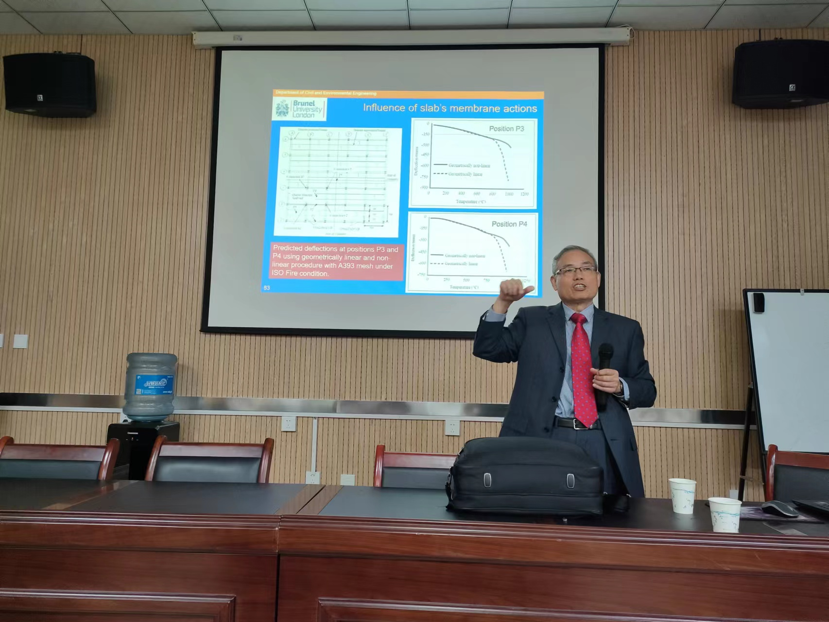 黄教授从组合结构防火的背景和重要意义切入,结合课题组一系列全尺寸火灾试验研究,阐述混凝土楼板内的拉膜效应对增强组合结构防火性能的重要作用;结合科学研究,编制计算机软件(Vulcan)进行三维分析,模拟钢结构、混合结构和钢筋混凝土结构在火灾情况下的力学和热学性能,为组合结构稳定、高效使用提供理论支持。