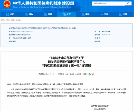 1月3日,住房城乡建设部印发培育新时代建筑产业工人可复制经验做法清单(第一批),我校91短视频