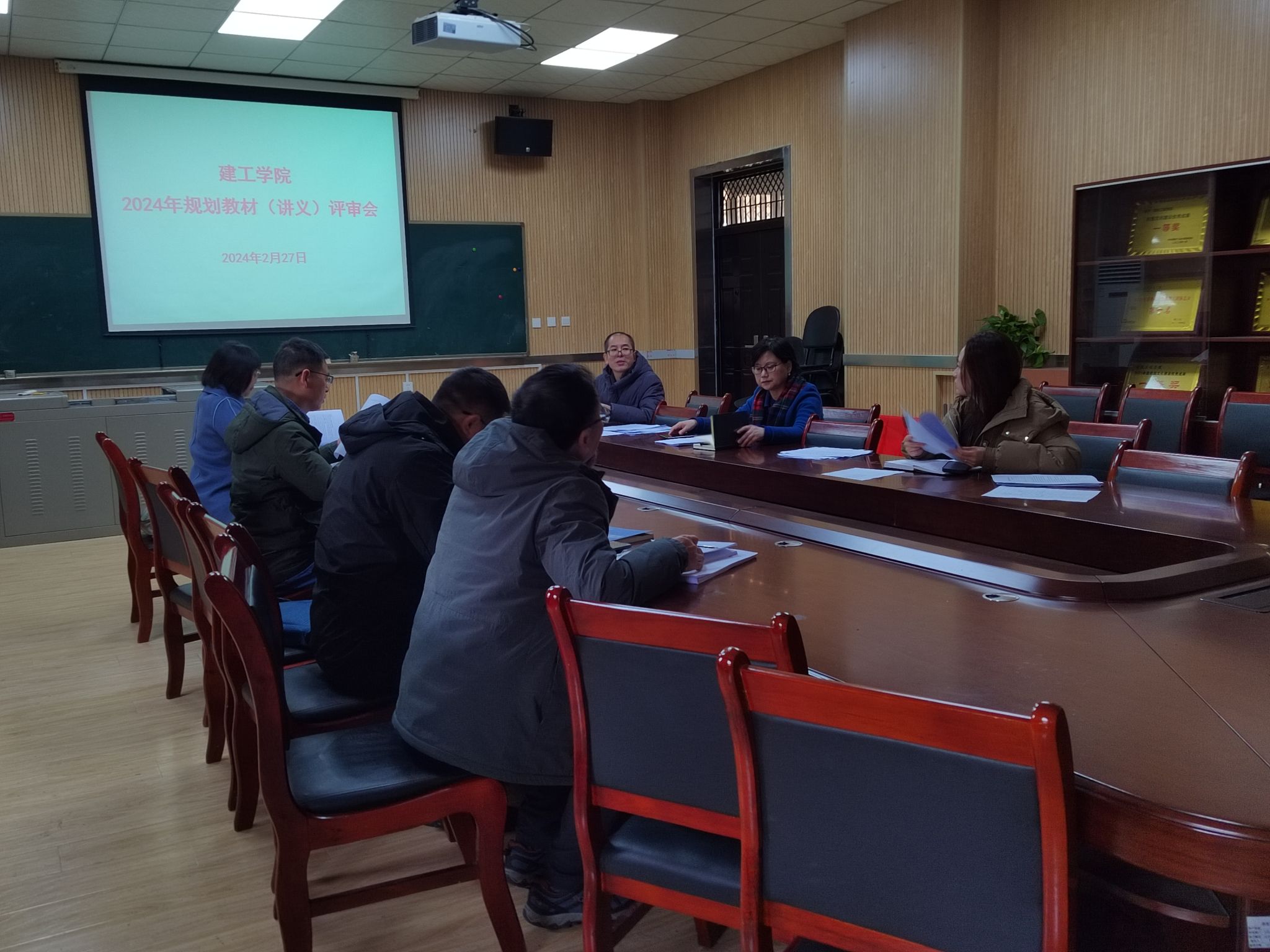 本科教材管理办法》,推动我校教材建设工作改革,进一步提高教学水平,学院于2月27日上午9:00组织召开2024年度规划教材(讲义)申报立项评审会。会议邀请学院学术委员会的6位项目评审经验丰富的专家学者组成评审组,会议由张治宏院长主持,围绕本年度规划教材(讲义)申报项目展开评审工作。