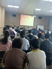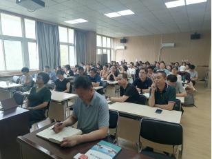 在教四楼201室召开全体教职工大会,部署暑期审核评估工作。