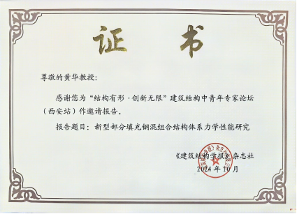 数十位教师和研究生参加了本次论坛。其中黄华教授担任分会场主席,并作题为“新型部分填充钢混组合结构体系力学性能研究”的邀请报告;青年教师张高望博士和郭梦雪博士分别作了题为 “面向大尺寸道面的橡胶水泥混凝土早龄期行为研究”、“基于人工智能的基础设施检测与评估”的报告。
