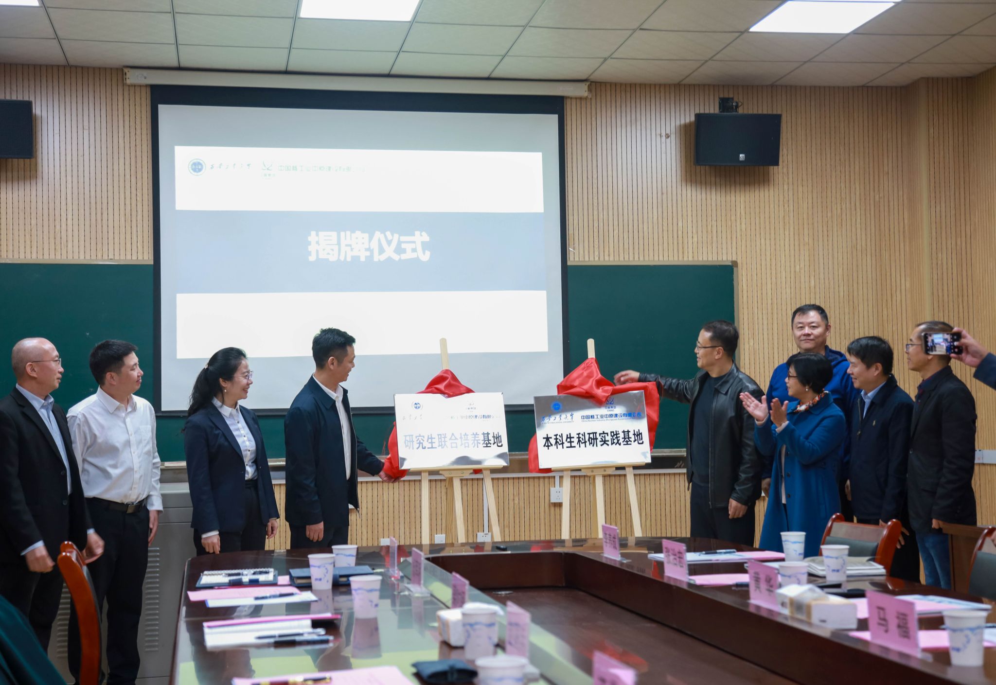 在双方共同见证下,马福、赵国兵共同签署战略合作框架协议,签署了研究生联合培养基地合作协议及本科生科研实践基地建设协议,并为实践基地揭牌。