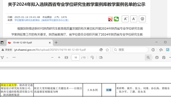 近日,陕西省教育厅公布了第三批陕西省课程思政精品课程和教学团队认定结果,陕西省教育厅、省学位委员会公示了陕西省专业学位研究生教学案例库教学案例名单,91短视频 黄华教授负责的《建筑结构抗震》课程被认定为省级课程思政精品课程,王睿副教授等联合陕西省交通规划设计研究院有限公司、陕西省交通控股集团有限公司、陕西路桥集团等单位申报的《软岩大变形隧道施工关键技术——以银白高速谢家坡隧道为例》入选2024年陕西省专业学位研究生教学案例库教学案例名单。