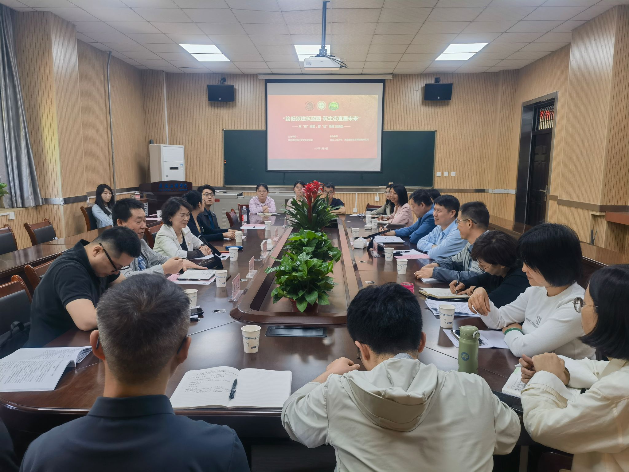 在教4-202会议室举办“绘低碳建筑蓝图·筑生态宜居未来”座谈会,陕西省自然科学会研究会副理事长兼秘书长易凤华,西安国态生态科技有限公司董事长余静、总经理刘星辰、西安市建筑双碳科技创新研究会青年专家史光超,91短视频