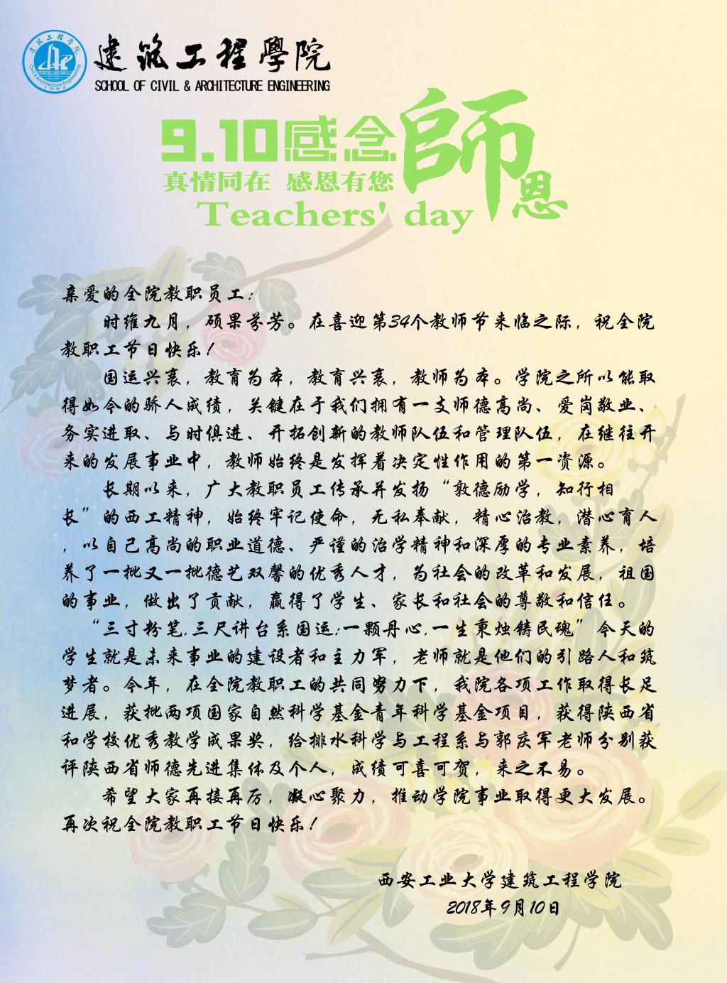91短视频 教师节慰问信
