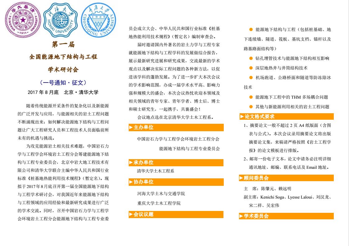 [学术会议]第一届全国能源地下结构与工程学术研讨会(一号通知 征文)