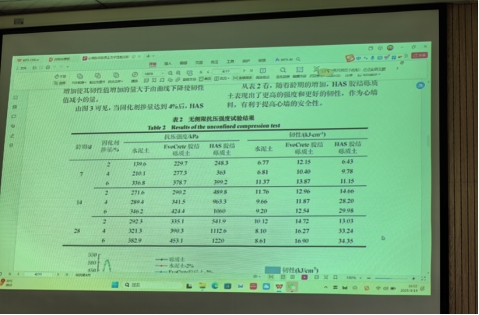 张经理不断调出对比数据、实验指标、现场资料……,用“会说话”的案例来解读HAS固化剂,师生们直观认识了固化剂在水库除险加固、河湖清淤、深浅层软基处理、临时施工道路建设等领域的创新应用。