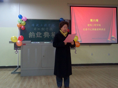 随着悠扬的国歌声起,结业典礼正式拉开了序幕。大家首先观看了精心准备的党课回顾视频,学员们也一并回顾了自己两个月来参加党课的各种表现。接下来,由建工学院党委书记黄越老师宣读了本期党课培训优秀学员名单,并由各学生支部书记为他们颁发了证书,优秀学员代表乔天同学在致辞中表示,经过党课学习,同学们加深了对党的认识,了解了党的历史,并郑重承诺今后会严格要求自己,从思想上和行动上积极向党组织靠拢,争取早日成为一名合格的共产党员。