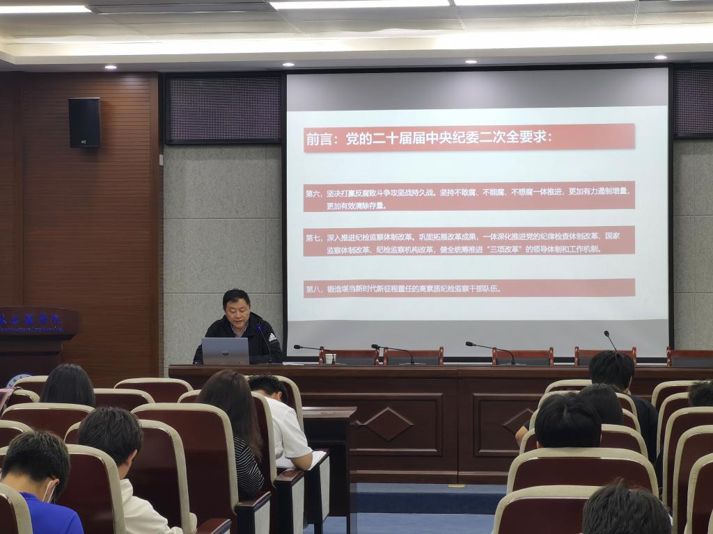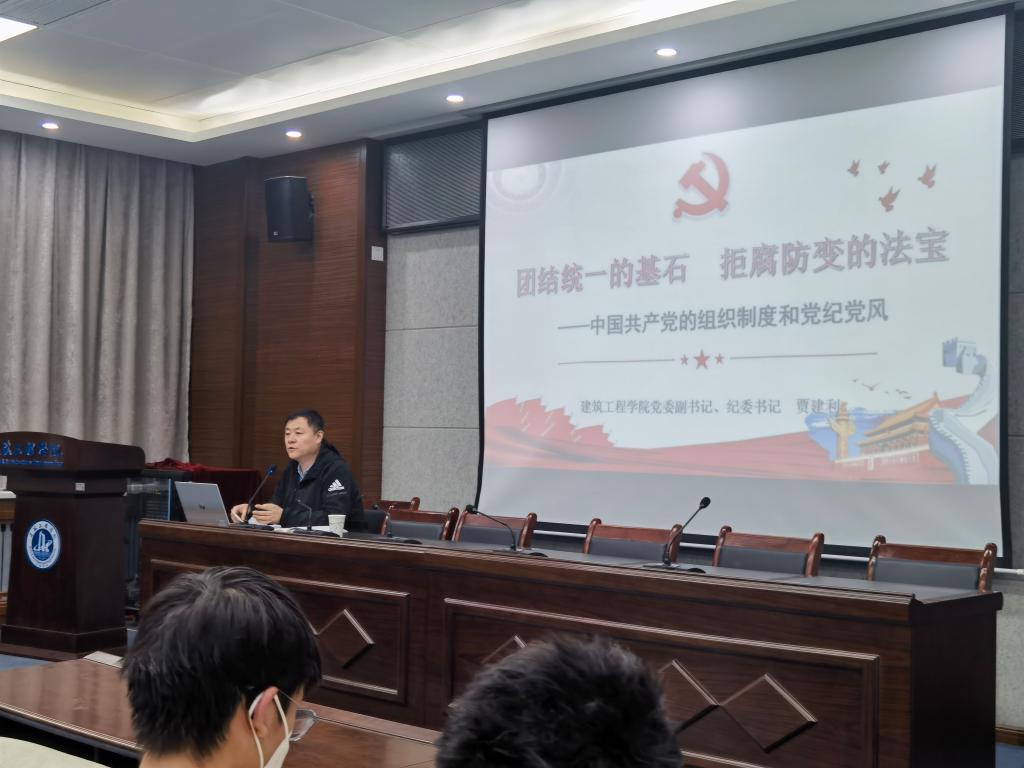 贾建利老师以“团结统一的基石,拒腐防变的法宝——中国共产党的组织制度和党纪党风”为题讲授本次课程。老师主要为同学们讲授了三点内容,分别为中国共产党的组织原则和组织机构、中国共产党的纪律和中国共产党的优良作风。