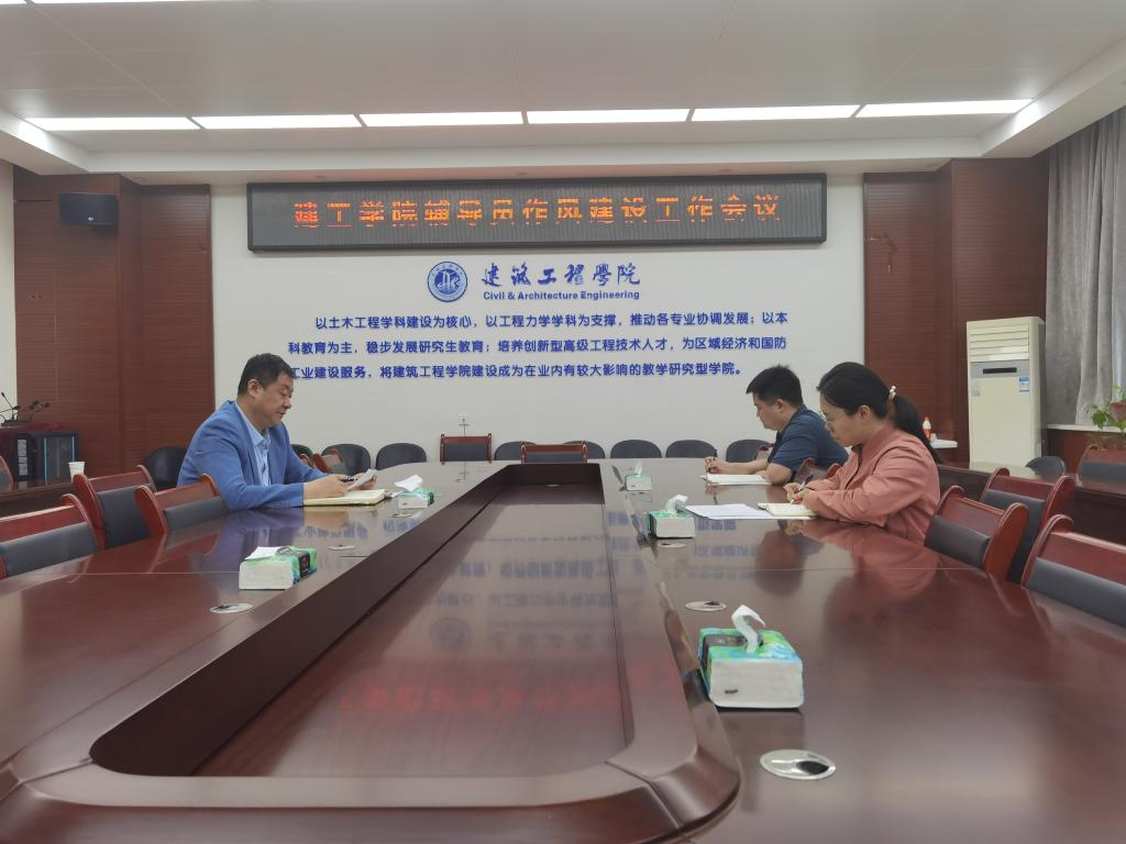 在工4-302召开辅导员作风建设工作会议,会议由学院党委副书记、纪委书记贾建利主持,学院全体辅导员参会。