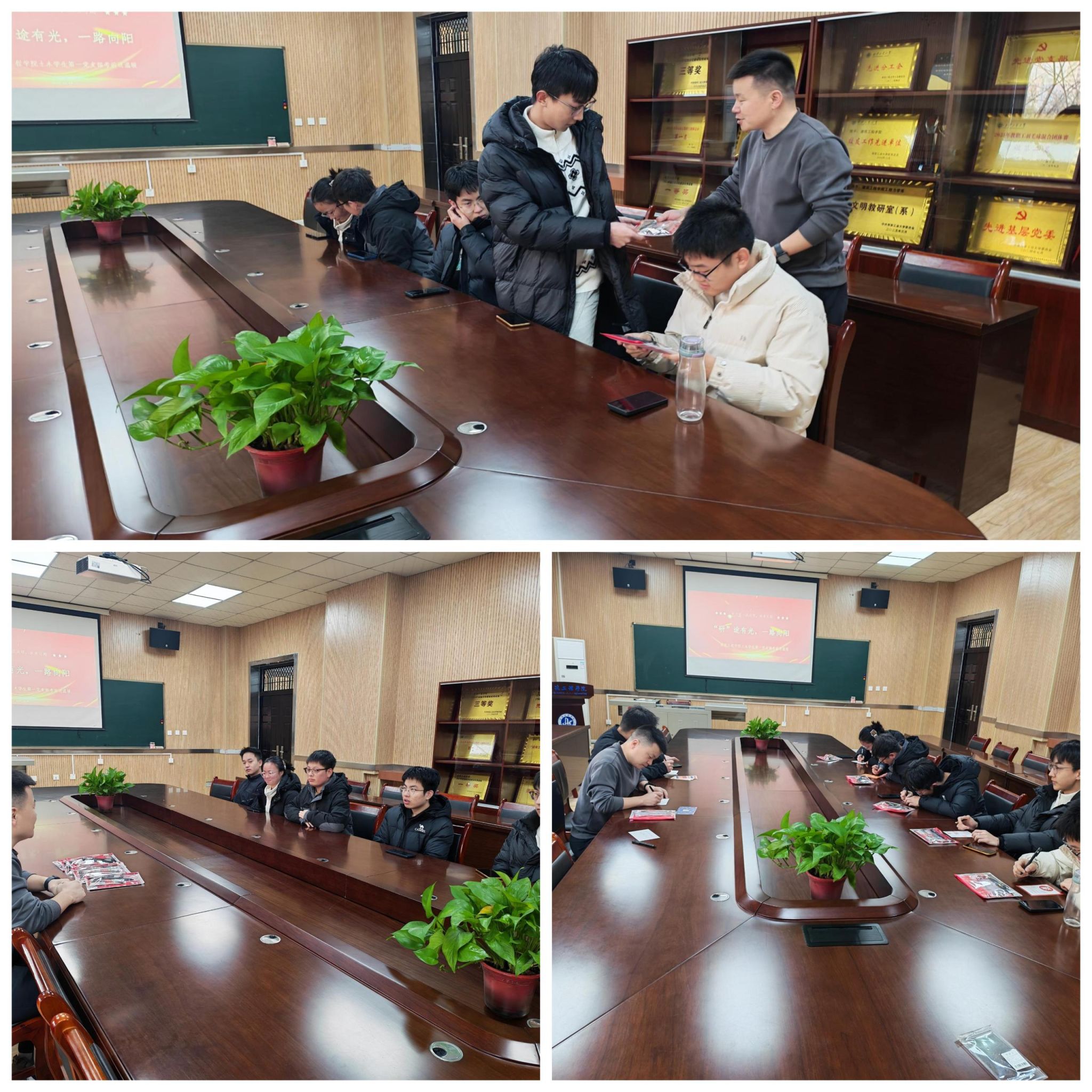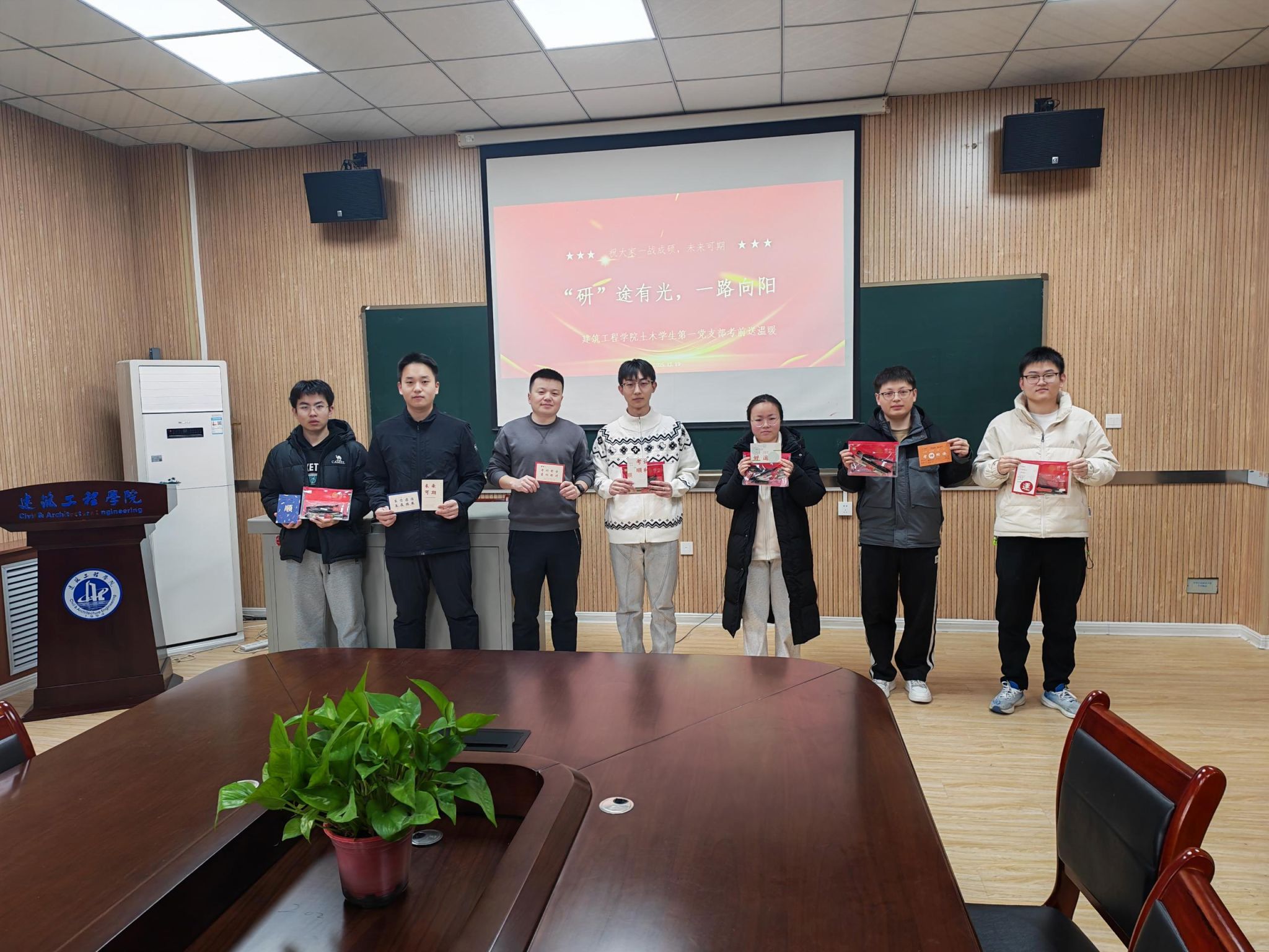 土木学生第一党支部于教4-202开展“研途有光,一路向阳”考研暖心活动。旨在为考研学子缓解备考压力,传递党组织的关怀,以支部力量为学子逐梦之路保驾护航。